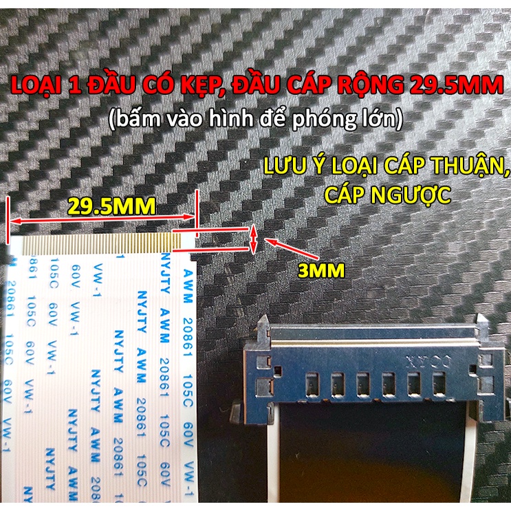 *** VUI LÒNG XEM THÔNG SỐ, HÌNH HƯỚNG DẪN, PHẢI BẢO ĐẢM CÁC THÔNG SỐ NÀY GIỐNG VỚI CÁP CŨ CỦA BẠN. CÁC THÔNG SỐ BẮT BUỘC PHẢI GIỐNG: SỐ CHÂN CỦA CÁP, LOẠI CÁP, CHIỀU RỘNG ĐẦU CÁP (đo chiều rộng đầu cáp trước, sau đó suy ra PITCH như trong hình hướng dẫn, lúc đặt hàng, chọn PITCH tương ứng).