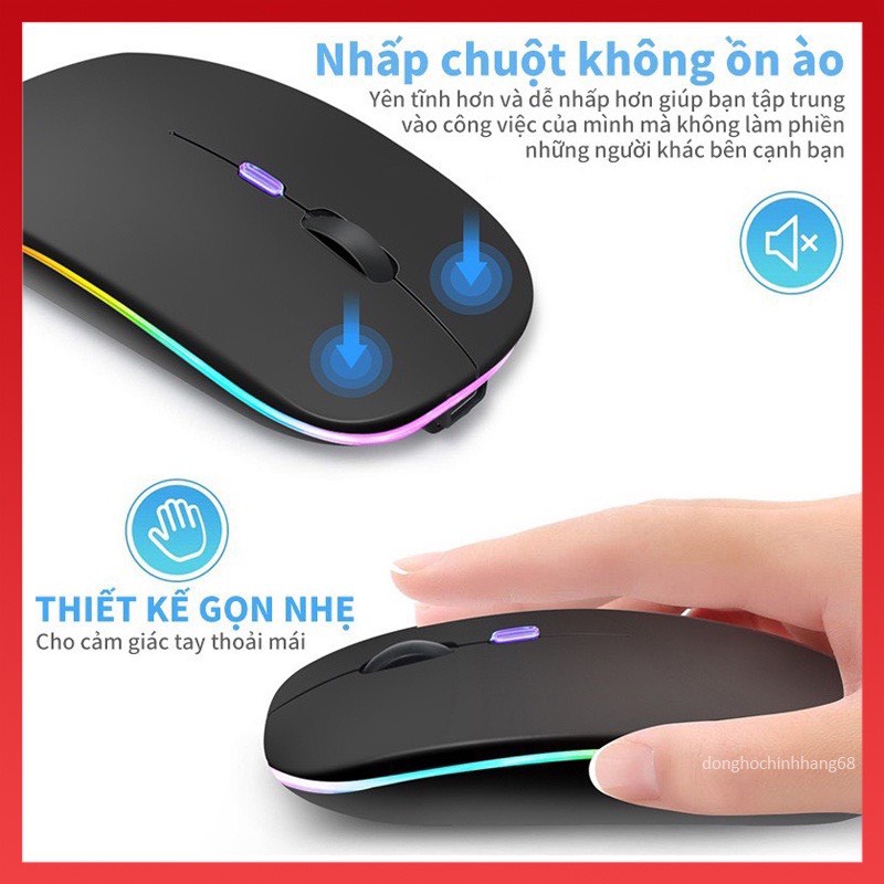 [CAO CẤP-A6] Chuột không dây A6 Flus Wireless R8 Pin sạc LED viền đa sắc màu, Dòng sản phẩm cao cấp được BH 12 Tháng