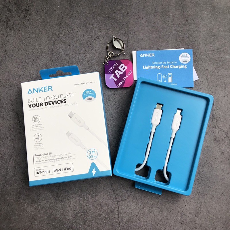 Điện Thoại & Phụ Kiện > Phụ kiện > Cáp, sạc & bộ chuyển đổi > Cáp & Bộ chuyển đổi di động || Cáp Anker PowerLine 3 UsbC To Lightning (A8832/A8833) - Bảo Hành 18TCòn hàng