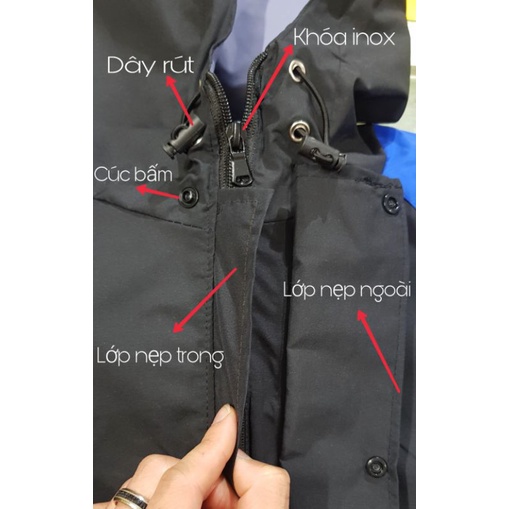 ❄️Khóa kéo, khóa bấm inox, dây rút tiện lợi ở mũ giúp chùm kín đầu