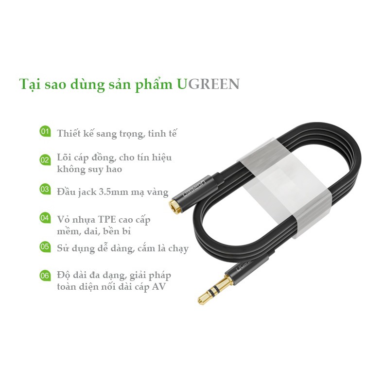 Cáp AV Nối Dài Ugreen AV118 10538 (Đen) giúp mở rộng phạm vi kết nối giữa các thiết bị phát âm thanh tới hệ thống âm thanh, loa của bạn.