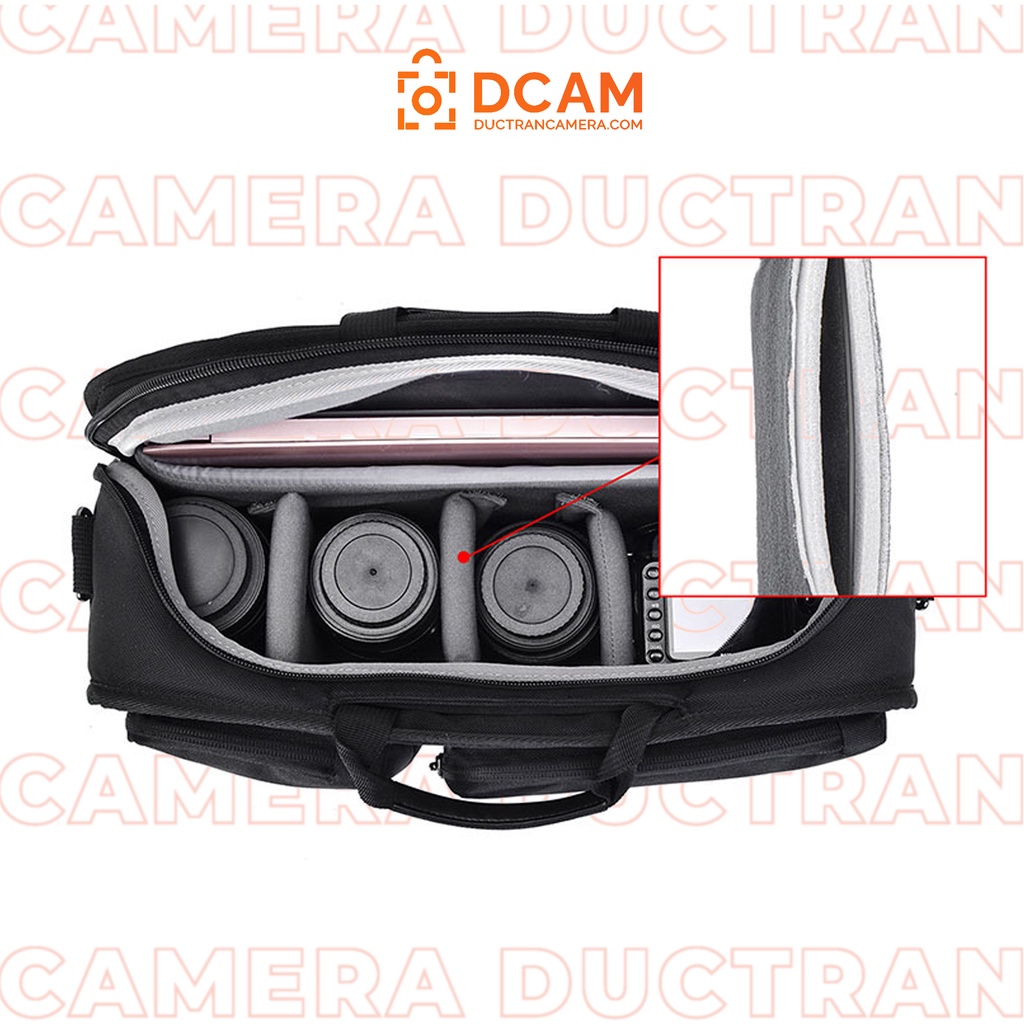 ► 3 Ngăn phụ: đựng điện thoại, ví, nắp lens, filter, đồ đạc phụ kiện,…