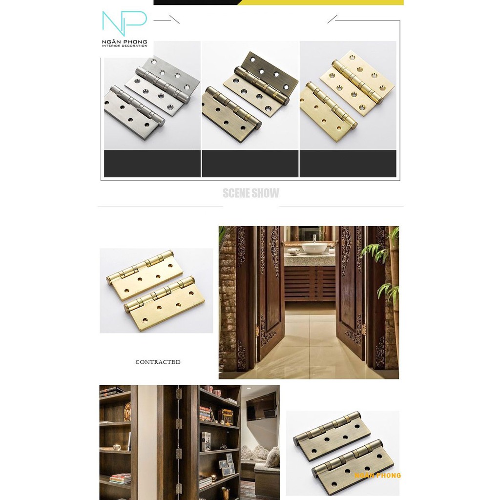 bản lề cửa inox 201 được thiết kế với 3 màu sắc chủ đạo là trắng inox, vàng và đồng xanh sẽ giúp cho bạn có nhiều sự lựa chọn cho ngôi nhà.