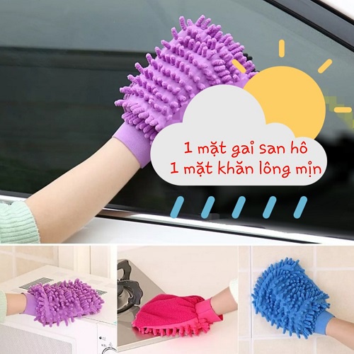 - Bao tay đa năng có hai mặt được dệt từ sợi Chenille – một loại sợi mềm dẻo và rũ như nhung, có khả năng gom giữ bụi bẩn trong kẽ vải và thấm nước rất tốt. Lực hút nước cực nhanh, gấp 5 lần so với chất liệu thông thường, là chuyên gia siêu thấm hút bụi, nước, dầu mỡ,…- Khả năng thấm hút nhanh, tạo bọt nhiều khi sử dụng để rửa xe. An toàn với các bề mặt vật liệu, không làm xước sơn, không lo trầy sước kính.