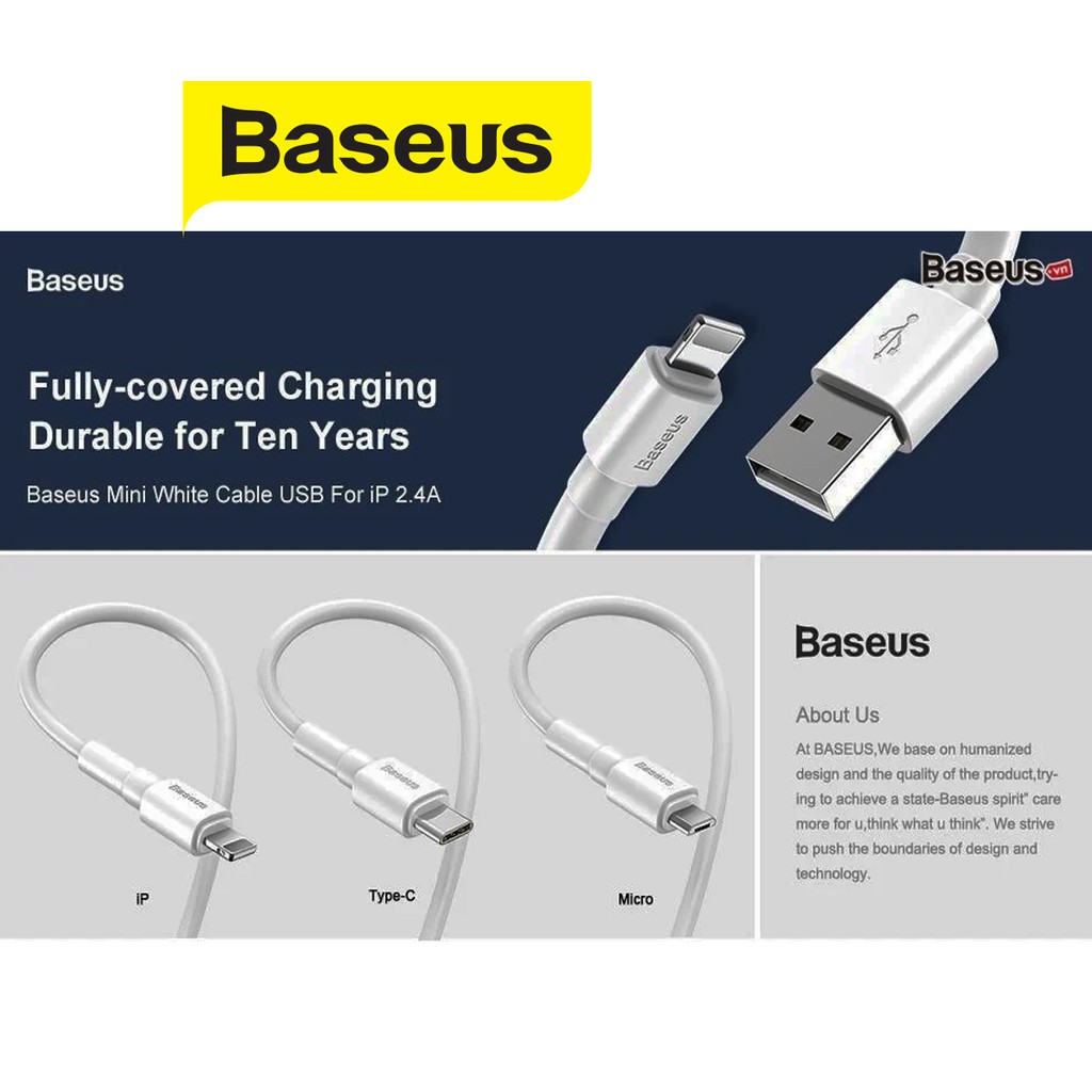 Điện Thoại & Phụ Kiện > Phụ kiện > Cáp, sạc & bộ chuyển đổi > Cáp & Bộ chuyển đổi di động || Cáp Baseus sạc nhanh và truyền dữ liệu Mini White lightning/micro/type-c (2.4A/3A )Còn hàng