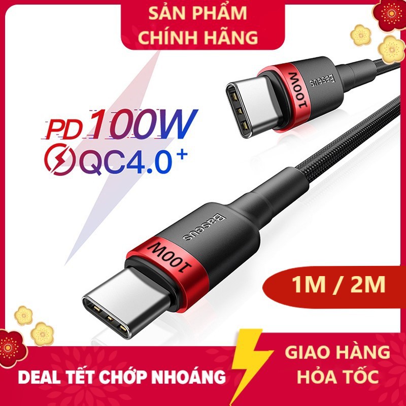 Cáp bện nylon siêu tốc độ BASEUS USB-C ra USB-C PD 3.0/QC 4.0 100W (20V/5A) Hàng chính hãng