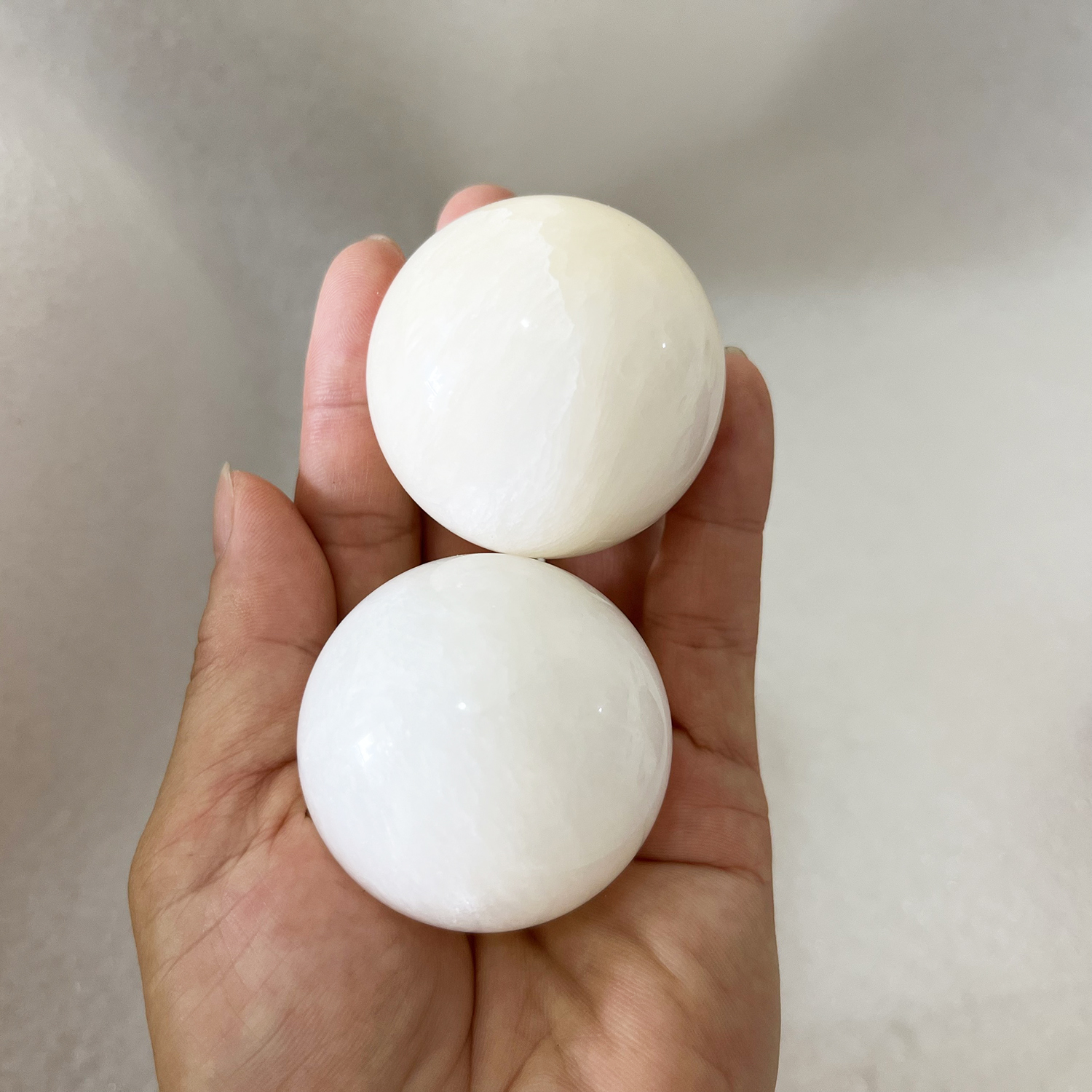 Cặp Bi Lăn Tay Đá Tự Nhiên Màu Trắng cho mệnh Thủy & Kim (Xưởng Đá Phong Thủy Mỹ Nghệ An An. đủ size