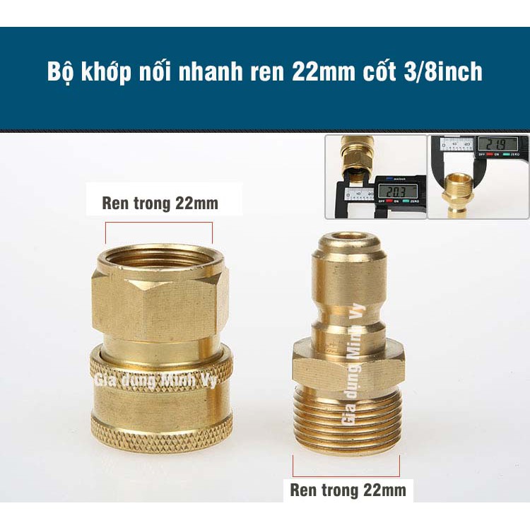Nhà cửa & Đời sống > Dụng cụ & Thiết bị tiện ích > Dụng cụ > Khác || [CAO CẤP] Bộ khớp nối nhanh đầu ra dùng cho máy rửa xe công nghiệp đầu ren 22mm cốt 3/8inch - nguyên bộ đồng - BKNN3/8Còn hàng