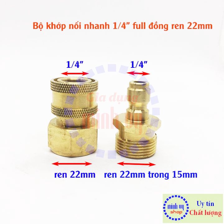 [CAO CẤP] Bộ khớp nối nhanh đầu ra dùng cho máy rửa xe đầu ren 22mm cốt 1/4inch - nguyên bộ đồng - BKNN1/4