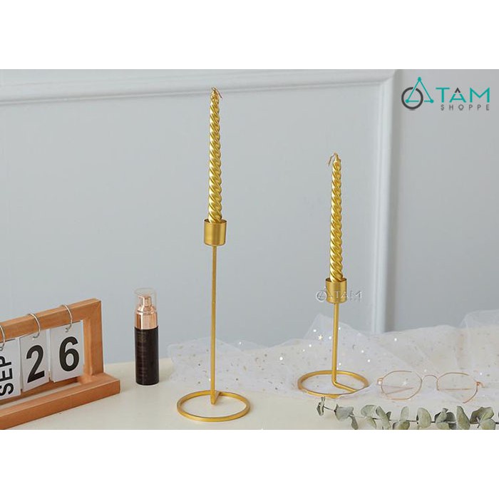 Nhà cửa & Đời sống > Trang trí nhà cửa > Nến & đồ đựng nến || [CAO CẤP] Chân nến cắm nến cây taper màu vàng đồng H-CHN-15Còn hàng