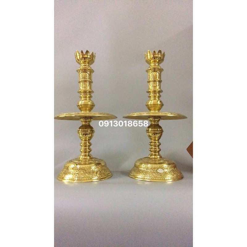 Cặp chân nến chân đèn thờ bằng đồng vàng nguyên chất.
