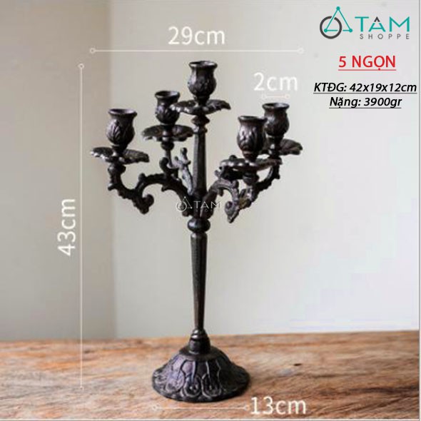 Giới thiệu [CAO CẤP] Chân nến cổ điển hoàng gia 5 ngọn cắm nến cây taper H-CHN-16