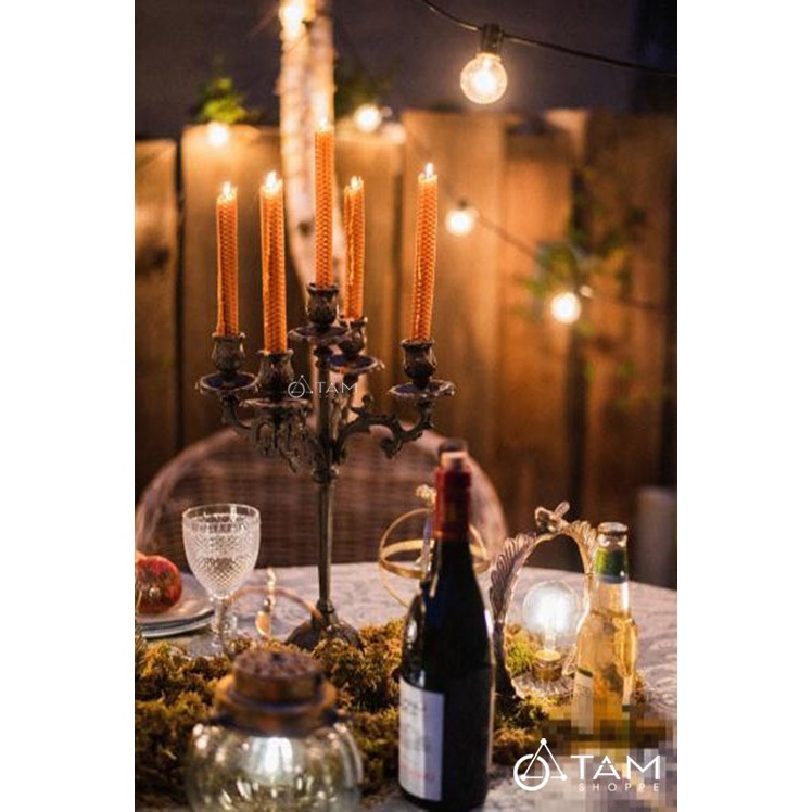 Ánh sáng là một phần không thể thiếu trong ngôi nhà của bạn. Đèn cầy hay gọi là nến tạo ra những giọt sáng đáng yêu nhẹ nhàng sưởi ấm không gian xung quanh nó. Và dĩ nhiên những chiếc chân nến trang trí hay đèn nến cũng là một phần quan trọng tôn vinh nét đẹp của đốm sáng nhỏ xinh này.Chân nến sắt cổ điển phong cách hoàng gia, được thiết kế 5 ngọn cắm vừa nến cây Taper thông thường. Chân nến là bằng sắt đặc chất lượng, nặng tay. Chân nến đẹp giúp bạn dễ dàng bố trí trên bàn tiệc sinh động, lung linh, ấm áp...