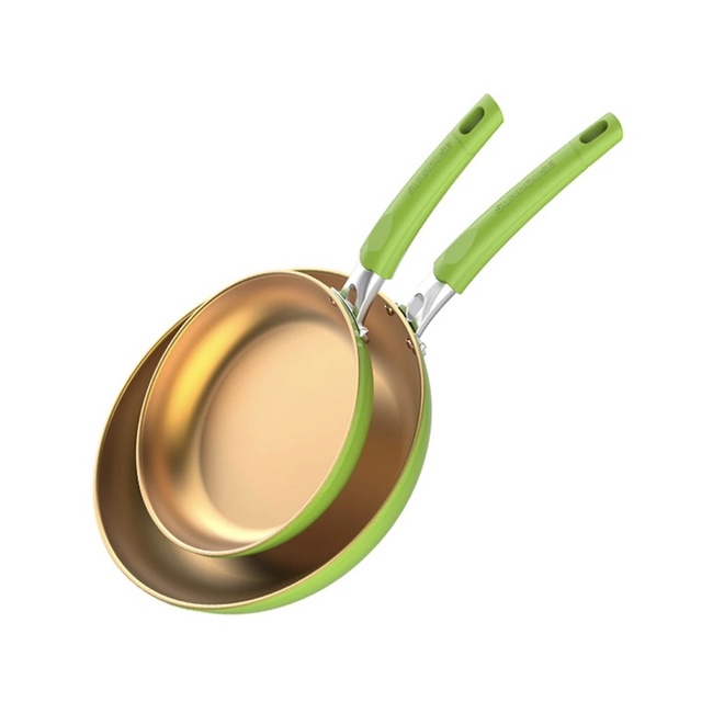 Cặp Chảo Chống Dính Đáy Từ Sunhouse SHG112026MGC - Xanh được thiết kế với kiểu dáng hiện đại, màu sắc nổi bật: lòng chảo màu vàng gold, thân và tay cầm của chảo màu xanh tươi tắn. Đây là điểm nhấn xinh xắn cho căn bếp của bạn.Được làm từ nhôm tấm nguyên chất với độ dày 2.2mm, chảo có khả năng bắt nhiệt nhanh chóng, tỏa nhiệt đều khắp toàn bộ đáy giúp thức ăn chín nhanh, không bị cháy khét và mất chất dinh dưỡng.