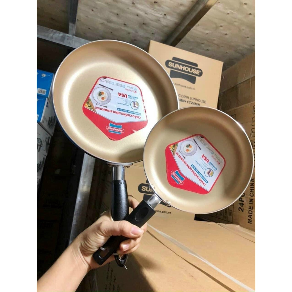 Nhà cửa & Đời sống > Dụng cụ nhà bếp > Chảo || Cặp chảo nhôm trơn cạn SUNHOUSE size 18 + 24cmCòn hàng