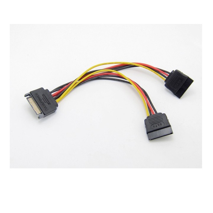 Cáp chia nguồn SATA 1 ra 2 chia từ 1 cổng nguồn SATA Male sang 2 cổng nguồn SATA Female.Sử dụng cấp nguồn cho ổ cứng SSD, HDD SATA 2.5" 3.5", DVD SATA.