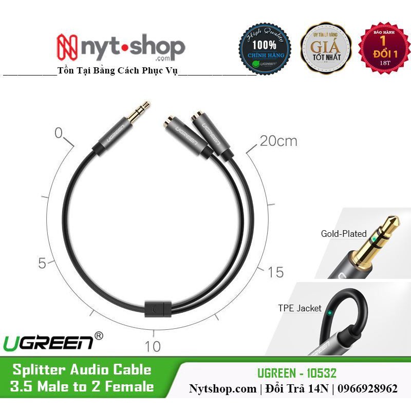 Thông Số Kỹ Thuật Cáp Chia 2 Cổng Audio 3.5mm UGREEN 10532 Cao Cấp