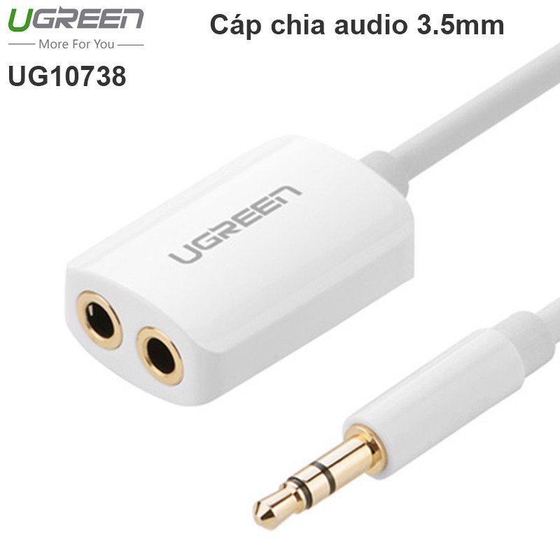 Cáp chia Audio 3.5mm 1 ra 2 tay nghe Cao Cấp Ugreen 10738 Chính Hãng màu trắng