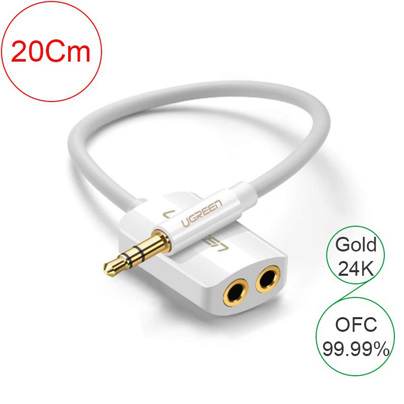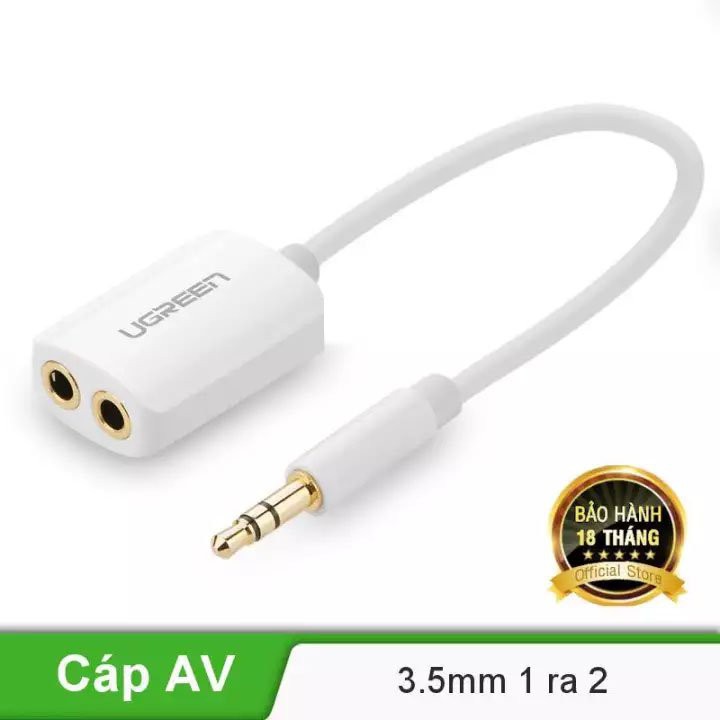 Máy tính & Laptop > Phụ Kiện Máy Tính > Bộ chia cổng USB & Đọc thẻ nhớ || Cáp chia Audio 1 ra 2 đầu 3.5mm chính hãng Ugreen 10738 màu trắngCòn hàng