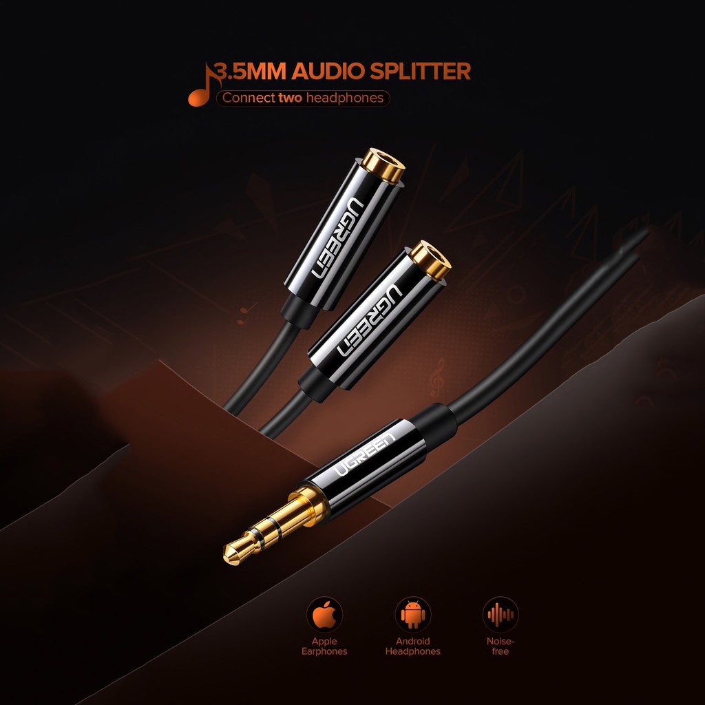 Cáp Chia Cổng Âm Thanh 3.5mm 1 Ra 2 Ugreen 20816 (dài 20cm)