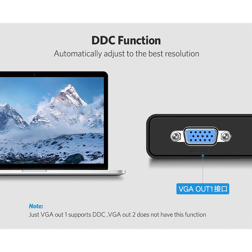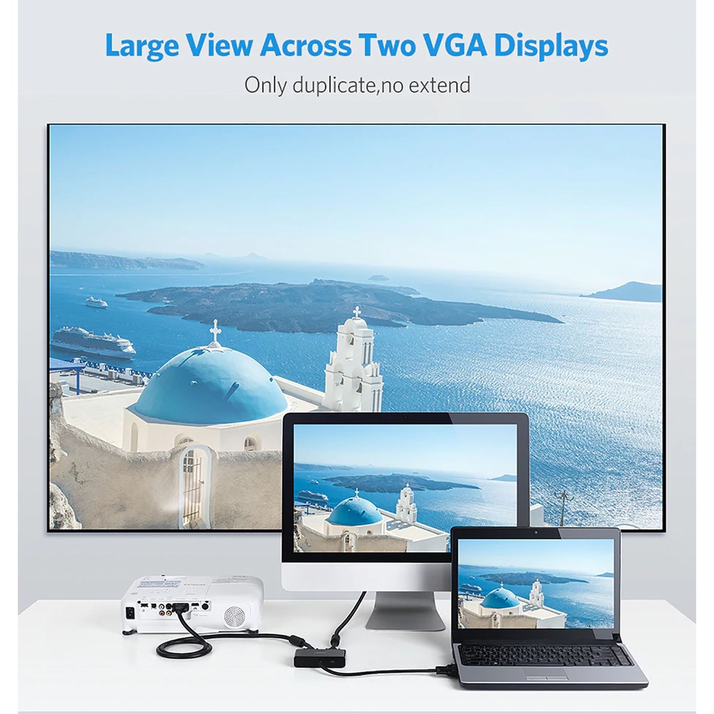 - Cáp chia cổng VGA 1 ra 2 Ugreen 40254 chính hãng mở rộng khoảng cách truyền lên đến 25m