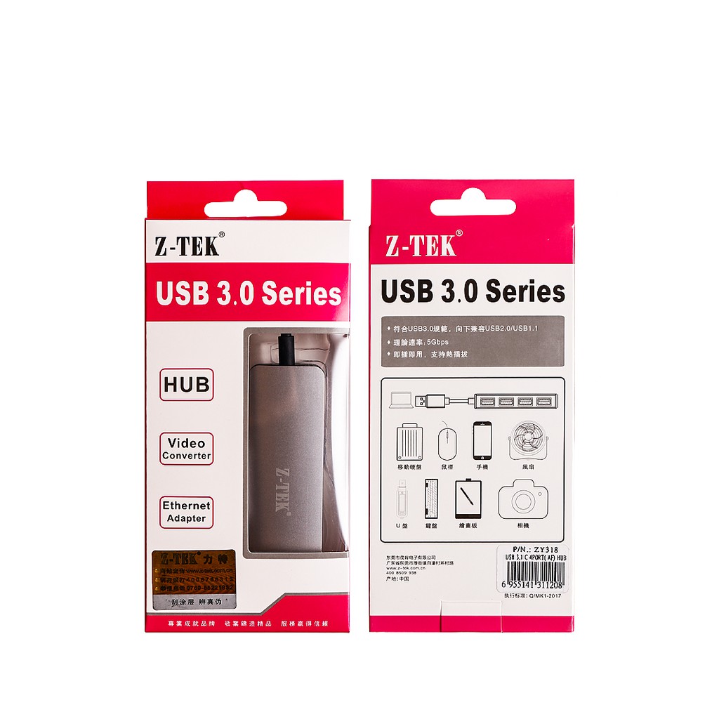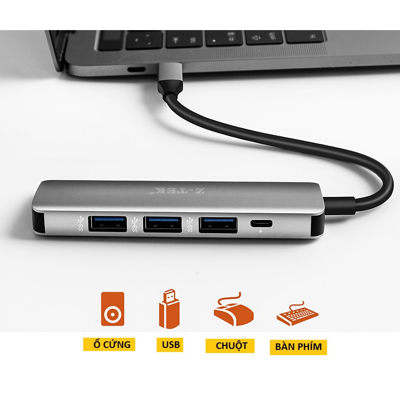 Máy tính & Laptop > Thiết Bị Lưu Trữ > USB & OTG || Cáp chia tín hiệu Type C sra 4 cổng USB 3.0 Ztek ZY 318Còn hàng