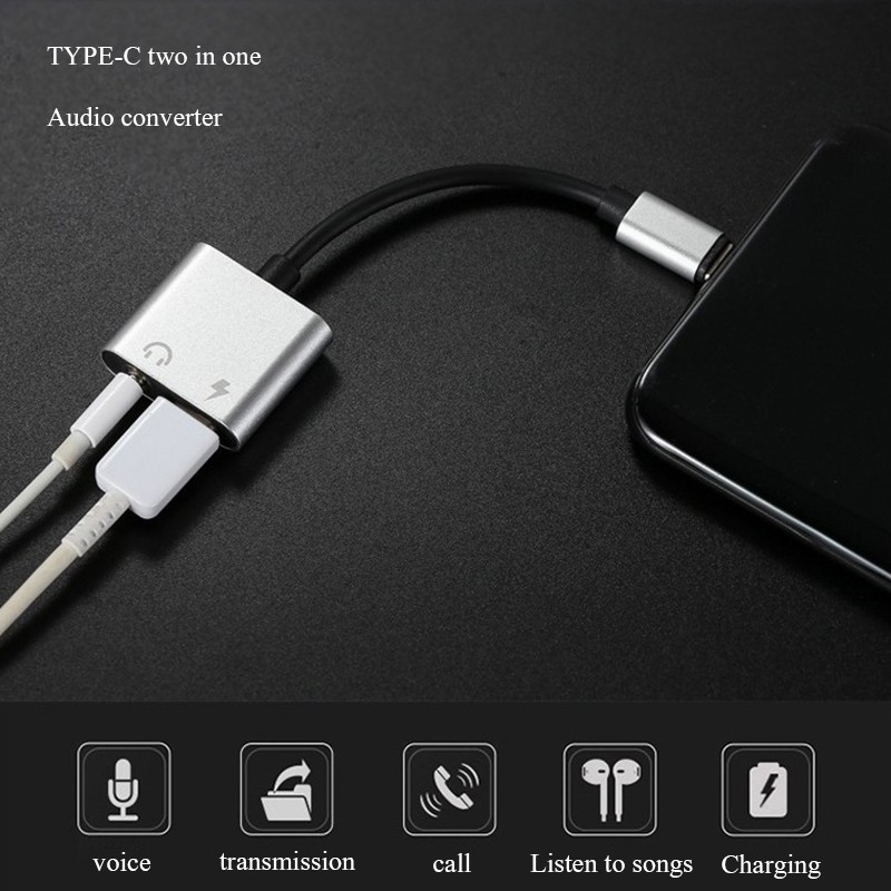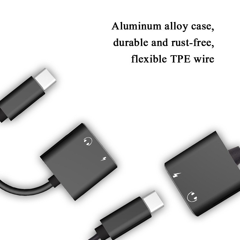 Cáp Chia Type-C Ra 2 Cổng Audio 3.5mm Và Cổng Sạc Type-C (Vuông)