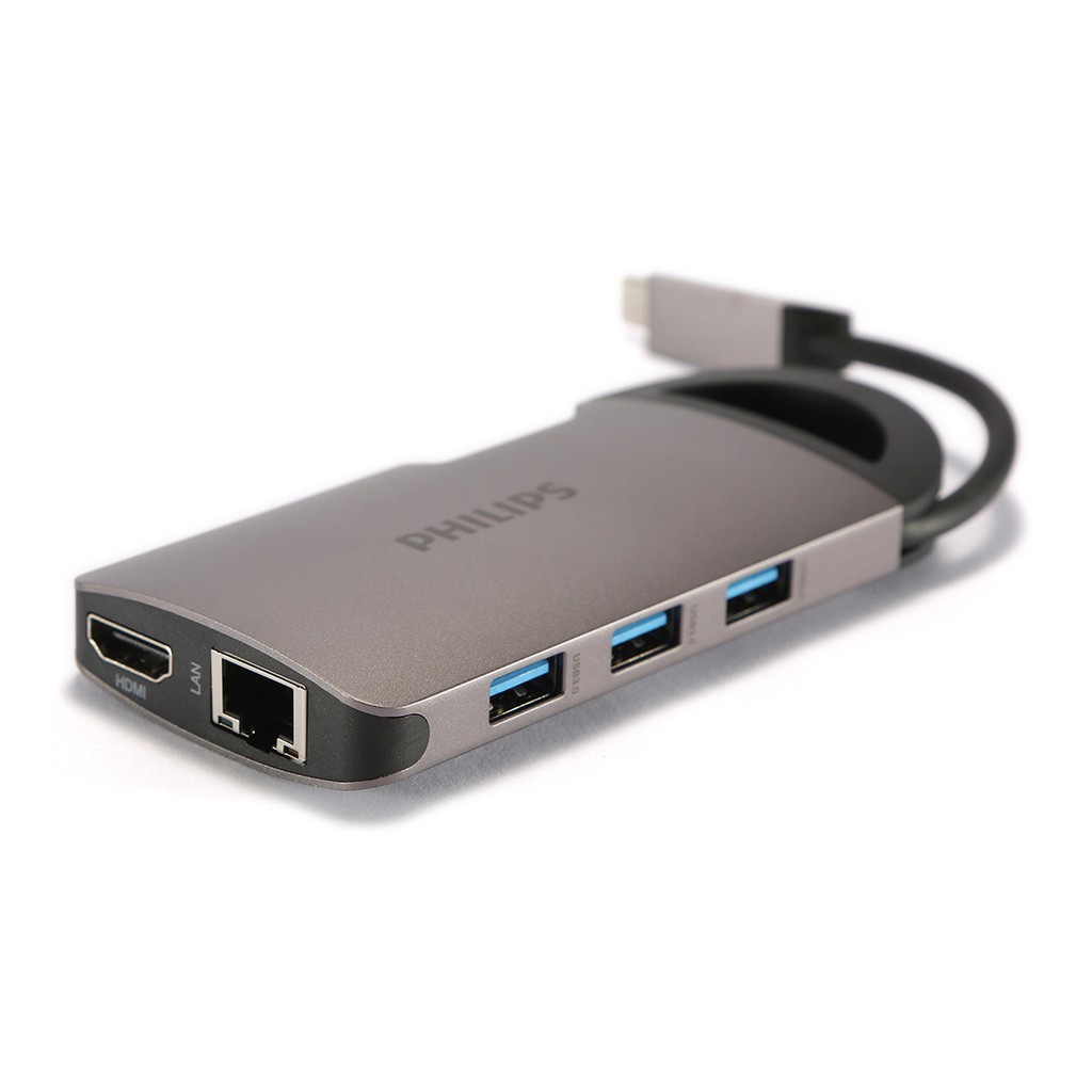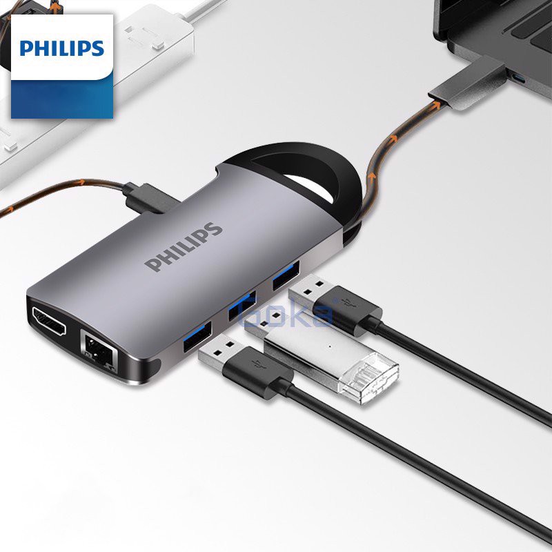 Cáp Type C -> 3 USB 3.0 +HDMI 4K + Lan RJ45 + Thẻ nhớ micro SD/TF + thẻ nhớ SD Philips DLK 6518C/94 , Chuyển Type C 8in1 - Hàng chính hãng có tem chống hàng giảBộ chuyển đổi mở rộng 8 in 1 từ cổng TYPE C sang 1 HDMI , 3 USB 3.0 , 1 LAN rj45 Gigabyte và cổng đọc thẻ nhớ micro SD và SD - đa năng 8 trong 1