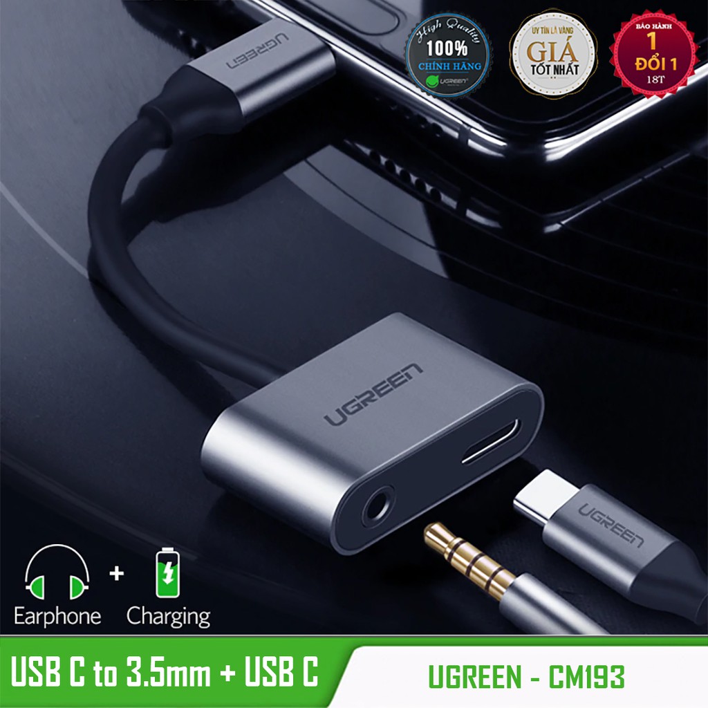 Máy tính & Laptop > Phụ Kiện Máy Tính > Bộ chia cổng USB & Đọc thẻ nhớ || Cáp Chia USB C ra Audio 3.5mm & USB C Charging Cao Cấp UGREEN CM193Còn hàng