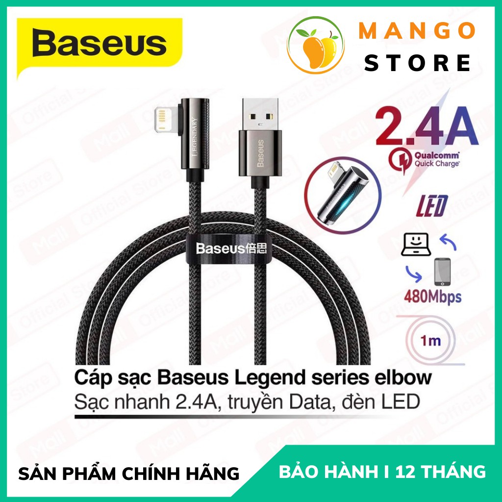 🔷Tên: Cáp dữ liệu sạc nhanh Baseus Legend Series Elbow USB to iP 2.4A