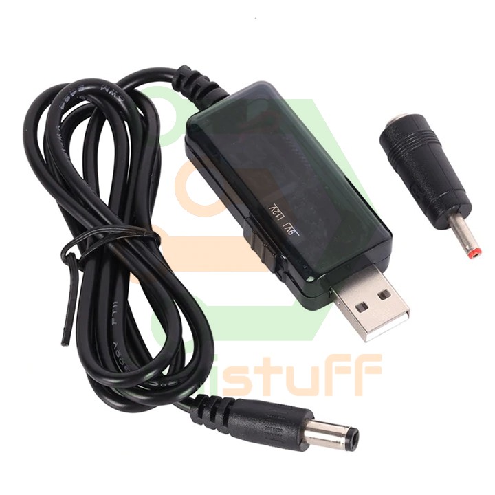 Cáp chuyển USB 5V sang 12V hoặc 9V (có nút chuyển đổi giữa 9V và 12V) là loại cáp chuyển đổi điện áp, đây là thiết bị 2 trong 1, thích hợp để chuyển điện 5V từ cục Pin dự phòng sang 12V hoặc 9V để sữ dụng cho modem Internet lúc cúp điện hoặc ứng dụng cho các thiết bị khác trong trường hợp tương tự.