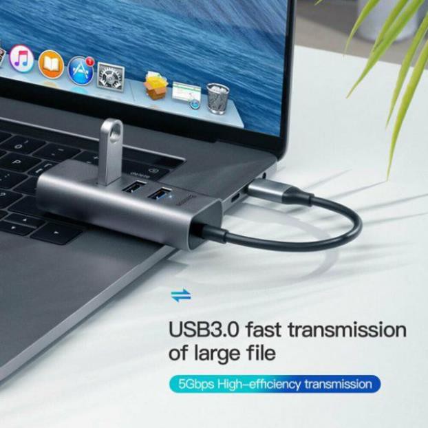 - Với bộ HUB chuyển cổng Type C sang cổng mạng LAN RJ-45 Baseus Enjoy Series bạn có thể giữ cho thiết bị của mình luôn được kết nối mạng ngay cả khi điện thoại/ Tablet/ Macbook/ Laptop của bạn đang ở nơi không có mạng Wifi .- Được tích hợp chip xử lý hình ảnh tốc độ cao bộ HUB cho tính hiệu truyền tải cực nhanh và ổn định. Hỗ trợ tốc độ mạng cực cao lên đến 1000Mbps. Sản phảm còn được tích hợp 3 cổng USB 3.0 tốc độ cao , cho phép mở rộng cổng giao tiếp.