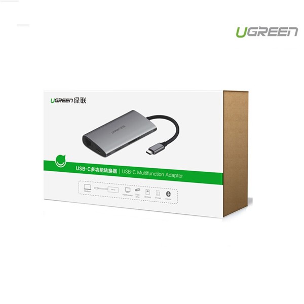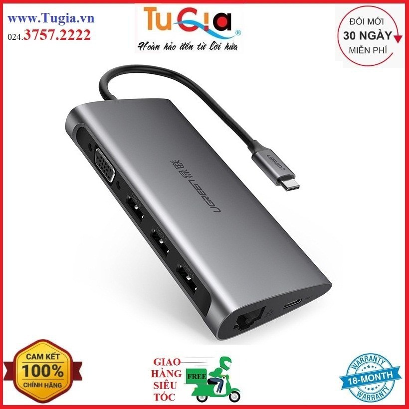 Thiết bị mở rộng Ugreen 50539 sử dụng để mở rộng cổng USB Type C giúp Macbook, Pixel ChromeBook của bạn có thể sử dụng được VGA/Ethernet/Hub USB 3.0/Card SD/TF.