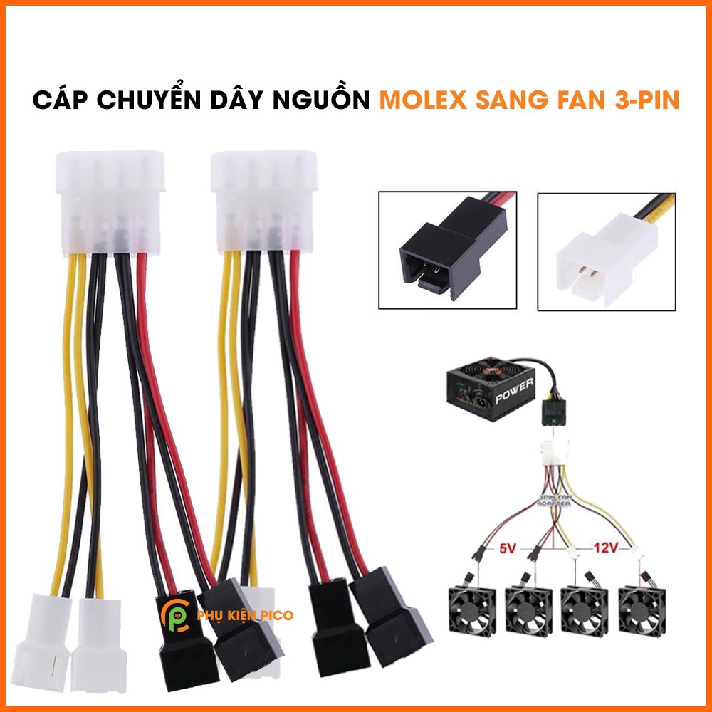 - Bộ sản phẩm gồm có: 1 cáp chuyển dây nguồn Molex sang Fan 3 Pin