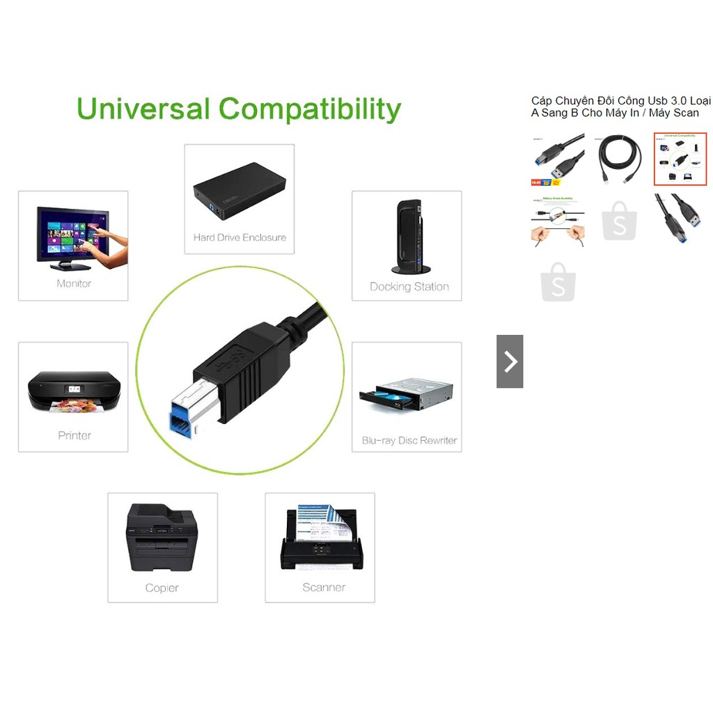Máy tính & Laptop > Thiết Bị Lưu Trữ > USB & OTG || Cáp Chuyển Đổi Cổng Usb 3.0 Loại A Sang B Cho Máy In/ Máy ScanCòn hàng
