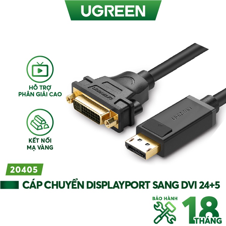 Cáp chuyển đổi DisplayPort male to DVI female - dài 15CM UGREEN 20405 (màu đen)