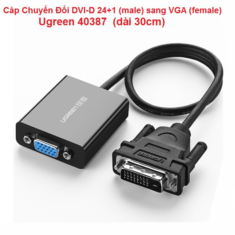 Máy tính & Laptop > Thiết Bị Lưu Trữ > USB & OTG || Cáp Chuyển Đổi DVI-D 24+1 (male) sang VGA (female) Ugreen 40387 (dài 30cm)Còn hàng