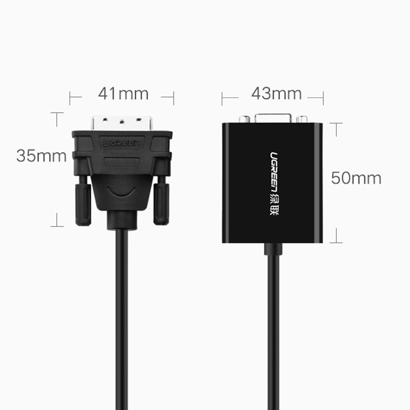 Cáp chuyển đổi DVI-D sang VGA cao cấp Ugreen 40387 là sợi cáp được thiết kế để kết nối máy tính, laptop, card màn hình cổng DVI của bạn với màn hình, máy chiểu cổng VGA với độ phân giải hỗ trợ lên đến FullHD 1920x1080P/60Hz, tính năng cắm là nhận mà không cần cài đặt driver mang đến cho bạn sự thuận lợi tối đa.