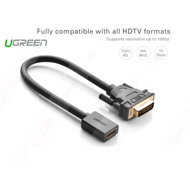 Cáp nối DVI (24+1) to HDMI chính hãng Ugreen 20118Giới thiệu: Cáp nối từ DVI 24+1 sang HDMI (âm) cao cấp Ugreen 20118