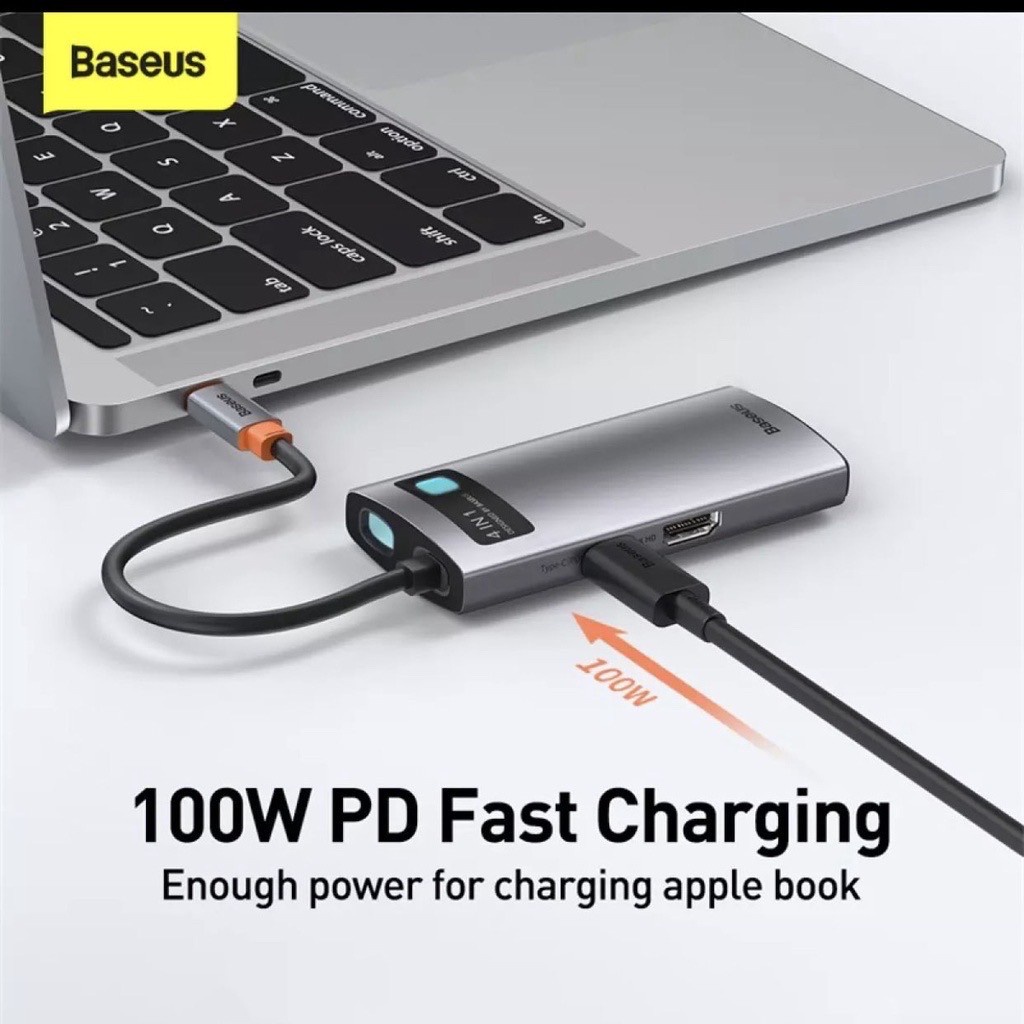 Cáp chuyển đổi Laptop Macbook Hub Baseus 4 in 1 Type C Ra 2 Usb , HDMI và cổng sạc PD Type C 100W - SPK Official