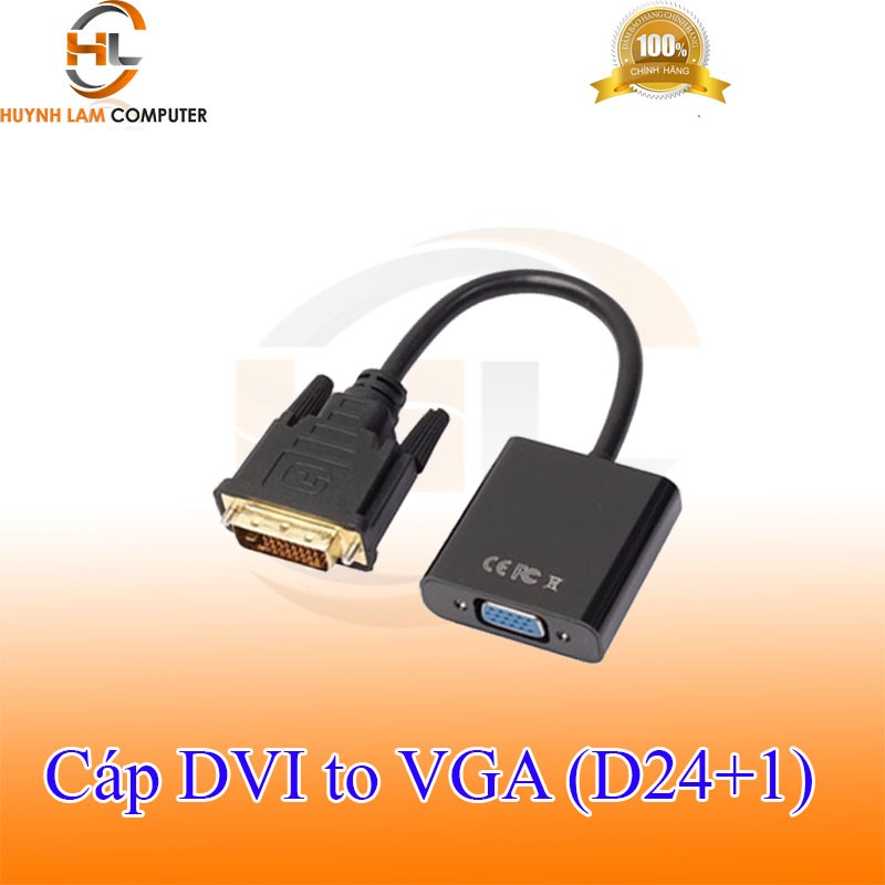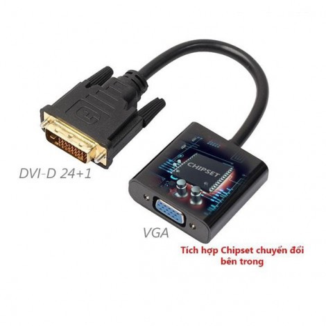 Cáp chuyển đổi tín hiệu DVI-D 24+1 sang VGA. Tích hợp chipset chuyển đổi bên trong, sử dụng kết nối Card đồ họa máy tính, ,mainboard máy tính bàn, máy tính đồng bộ có DVI ra màn hình máy tính, máy chiếu. Sản phẩm có IC chuyển đổi bên trong cáp