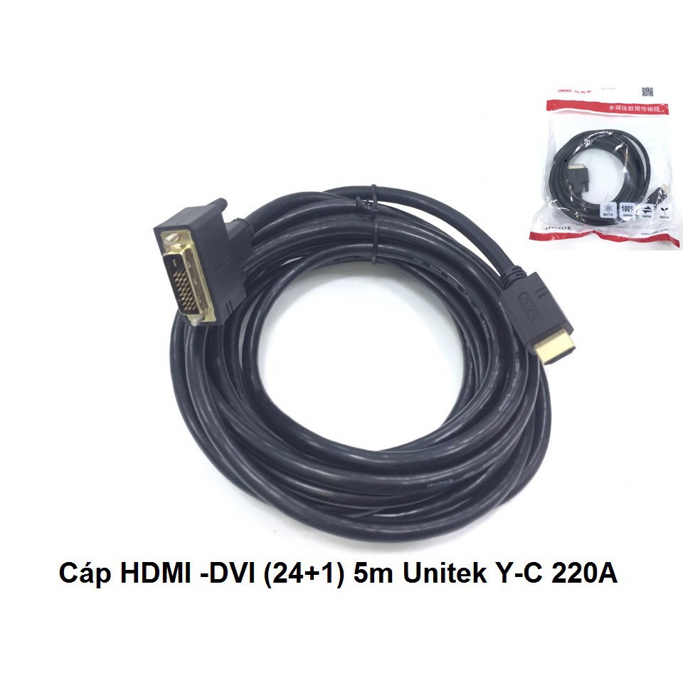 Máy tính & Laptop > Linh Kiện Máy Tính > Khác || Cáp chuyển đổi từ máy tính cổng HDMI sang màn hình máy tính cổng DVI D 24-1 kim dài 1.5m YC 217A, 5m YC 220ACòn hàng