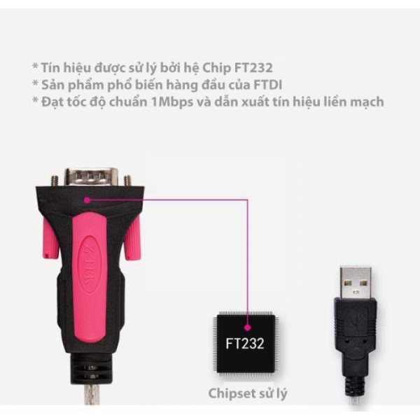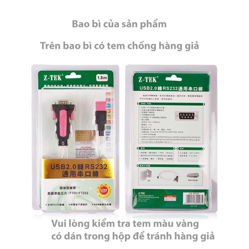 Cáp chuyển đổi từ máy tính usb 2.0 sang RS232 Ztek ( ZE 533a )Thương hiệu Ztek chính hãng