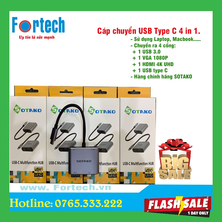 Máy tính & Laptop > Thiết Bị Lưu Trữ > USB & OTG || [Mã 253ELSALE hoàn 7% đơn 300K] Cáp chuyển đổi Type C 4 in 1 - VGA, HDMI, USB và Type C SOTAKO chính hãng.Còn hàng