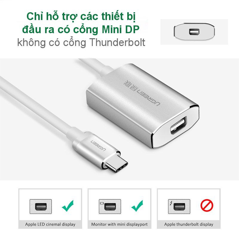 Cáp Chuyển Đổi Ugreen USB TypeC Sang Mini Displayport 40867 (25cm) Hàng Chính Hãng