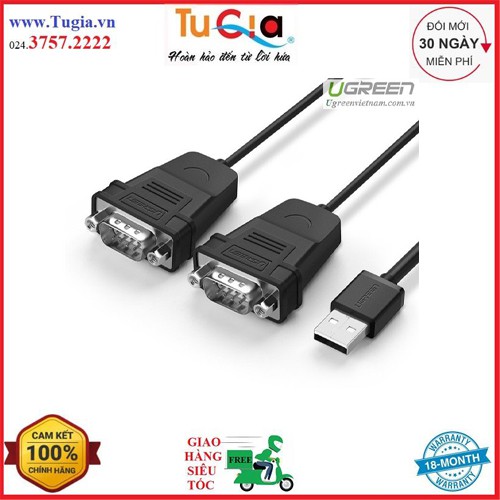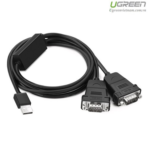 Cáp chuyển đổi USB 2.0 sang 2 đầu COM RS232 đực chuẩn DB9 dài 1.5m UGREEN US229 30769 - Hàng chính hãng