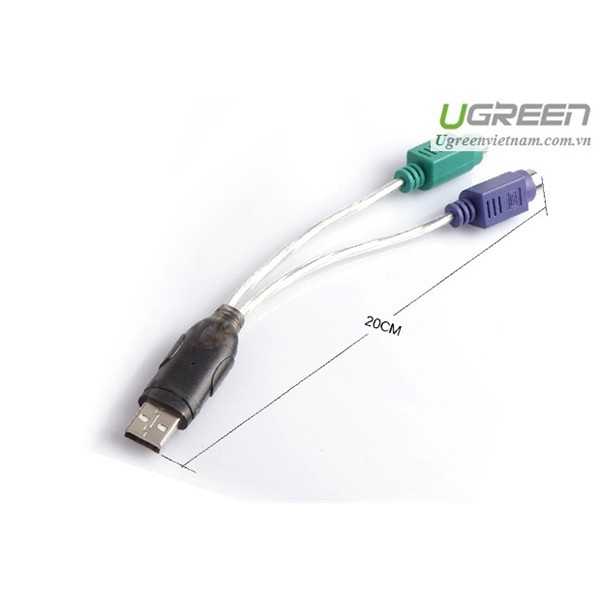 Cáp chuyển đổi USB 2.0 sang 2 cổng PS/2 cho bàn phím chuột Ugreen 20219 Chính hãng