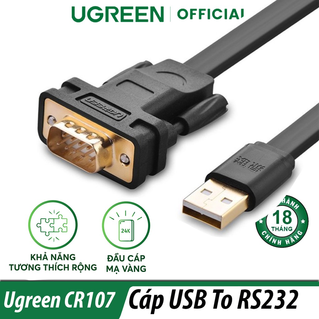 Cáp Chuyên Đổi USB 2.0 Sang RS-232 DB9 Chipset PL2303 Ugreen CR107 Chính Hãng