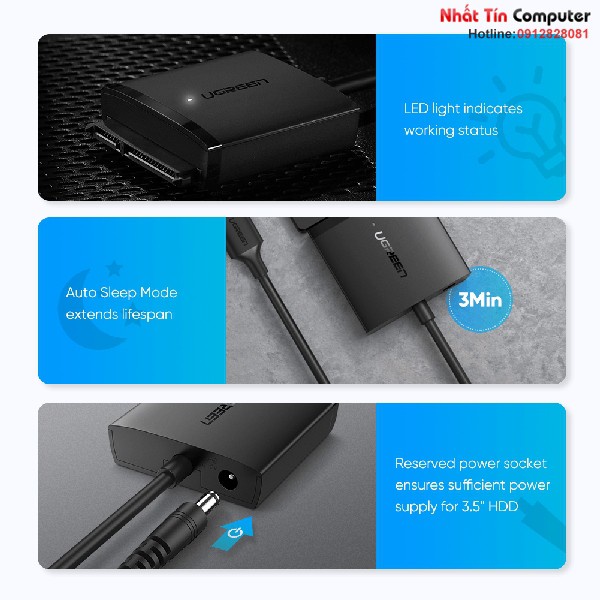 Máy tính & Laptop > Thiết Bị Lưu Trữ > USB & OTG || Cáp chuyển đổi USB 3.0 sang SATA cho ổ cứng SATA 2,5 /3,5 inch Ugreen 60561 cao cấpCòn hàng