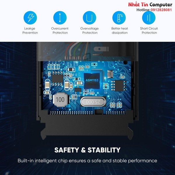 Tương thích với bản sửa đổi SATA I/II/III, tốc độ truyền thực tế phụ thuộc vào khả năng của ổ cứng HDD/SSD được kết nối.